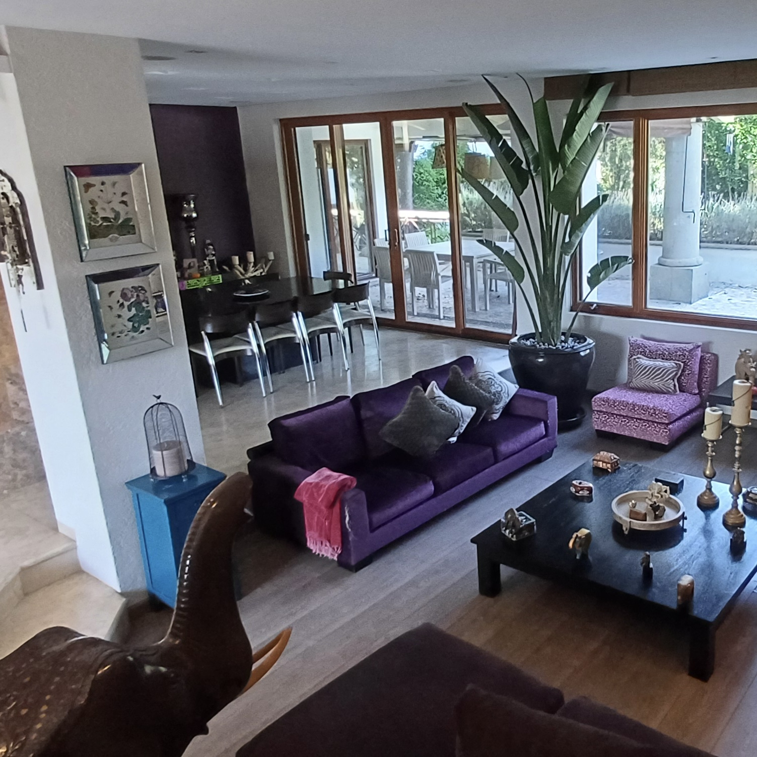 A nivel de calle está la sala-comedor y cocina con pisos de mármol y vista a la terraza/jardín. En este mismo nivel está el área de lavado y cuartos de servicio.