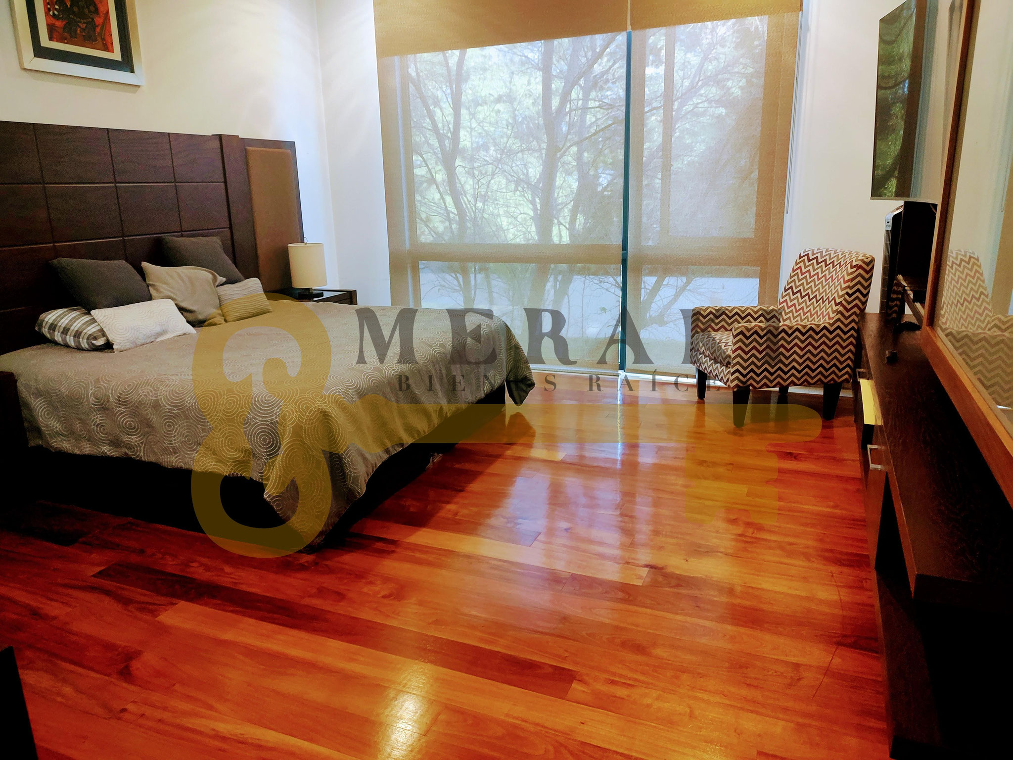 Una de las recámaras secundarias cuenta con una amplia terraza, sala de TV, sala comedor, clóset de visitas, estudio.