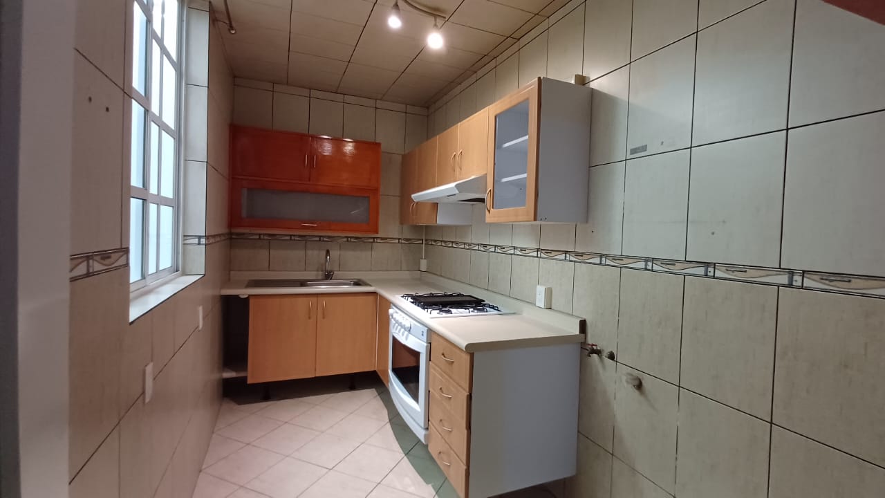 Departamento interior en planta baja, con dos recámaras, un estudio, cocina equipada, un baño completo, un