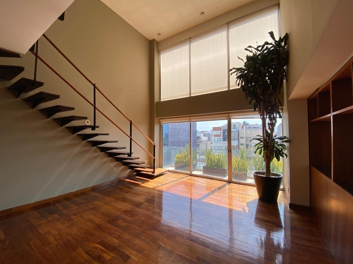 Distribuido en 2 pisos: En PB tiene una oficina, amplio cuarto de servicio y lavado, cocina abierta. En PA tiene un family room, entre los cuartos, y acceso al roof garden privado de 100 m2.