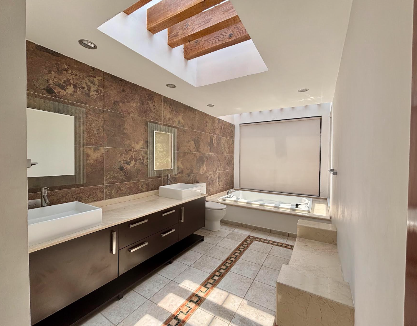 Sala de TV, cuarto de servicio con baño, área de lavado con patio, dos amplias terrazas, salón de eventos con medio baño, cocina integral, cada recámara con baño y dos de ellas con vestidor.